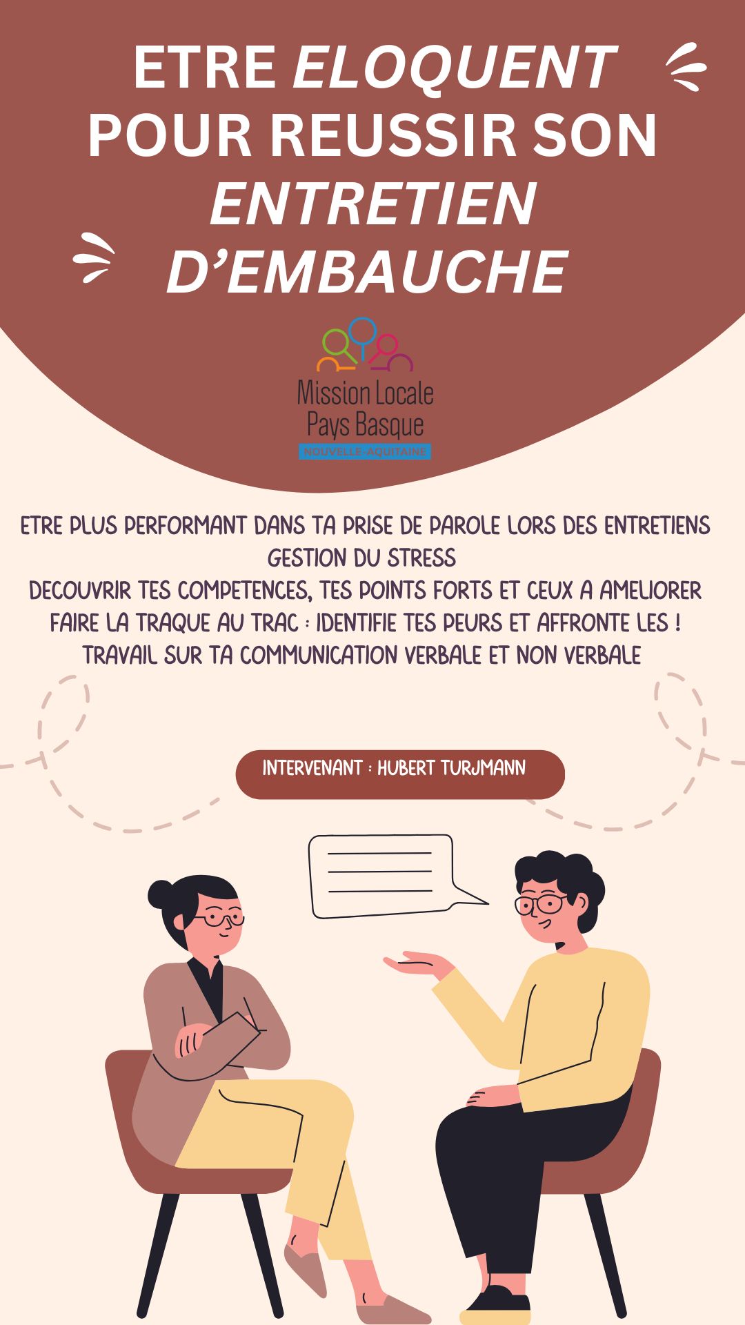 | | | | | | | | ATELIER ETRE ELOQUENT POUR REUSSIR SON ENTRETIEN D EMBAUCHE |