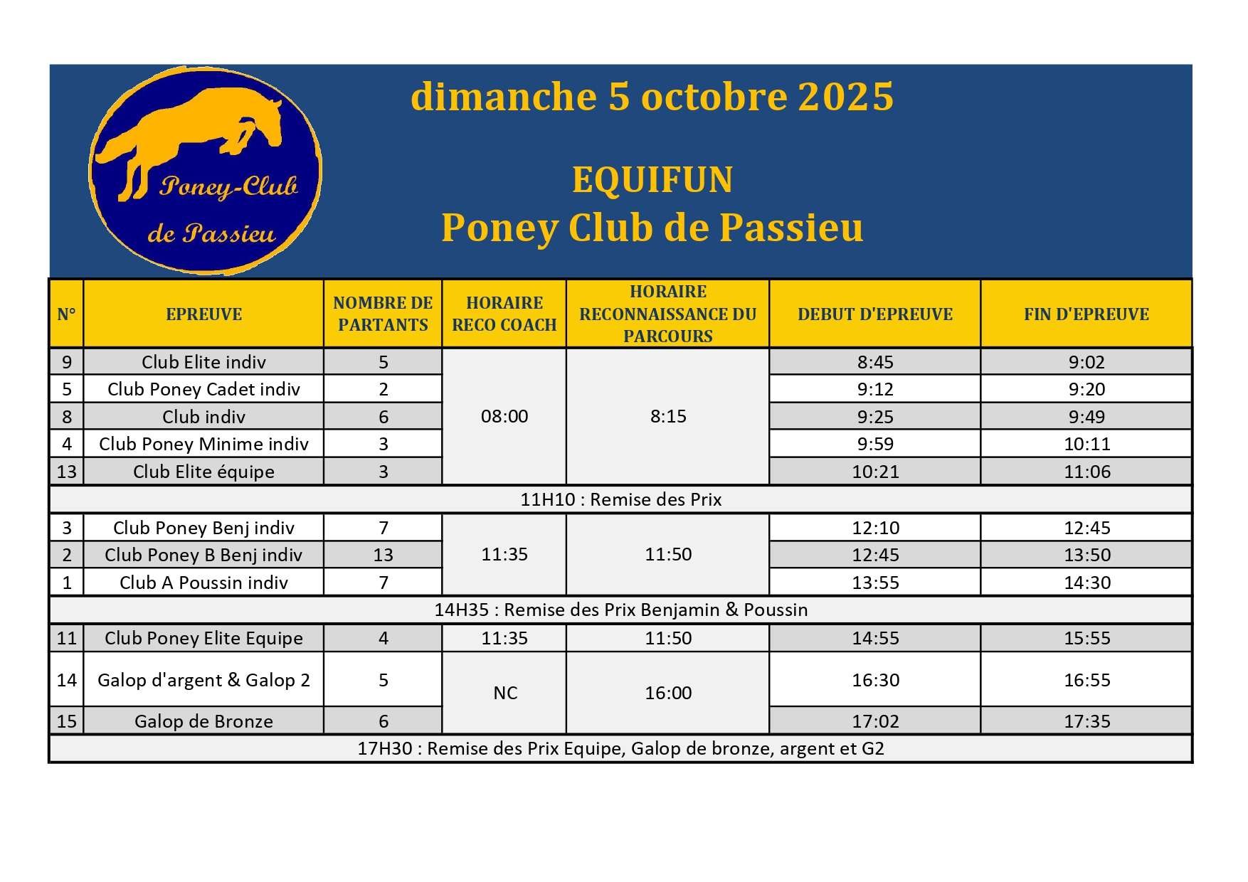 | Chaque cavalier(e) peut concourir plusieurs fois : - soit avec des poneys différents dans une même épreuve - soit avec un même poney ou un autre, en individuel et en équipe