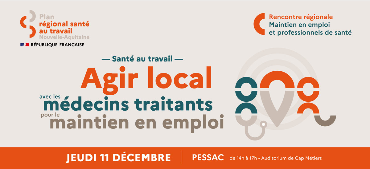 ——————————————————— Cette rencontre régionale s'adresse aux services de Prévention et Santé au Travail, aux acteurs du champs handicap et travail (Agefiph, Cap emploi, MDPH...) et aux acteurs et dispositifs de la santé (CPAM, URPS, CPTS, DAC, Contrats locaux de santé...).