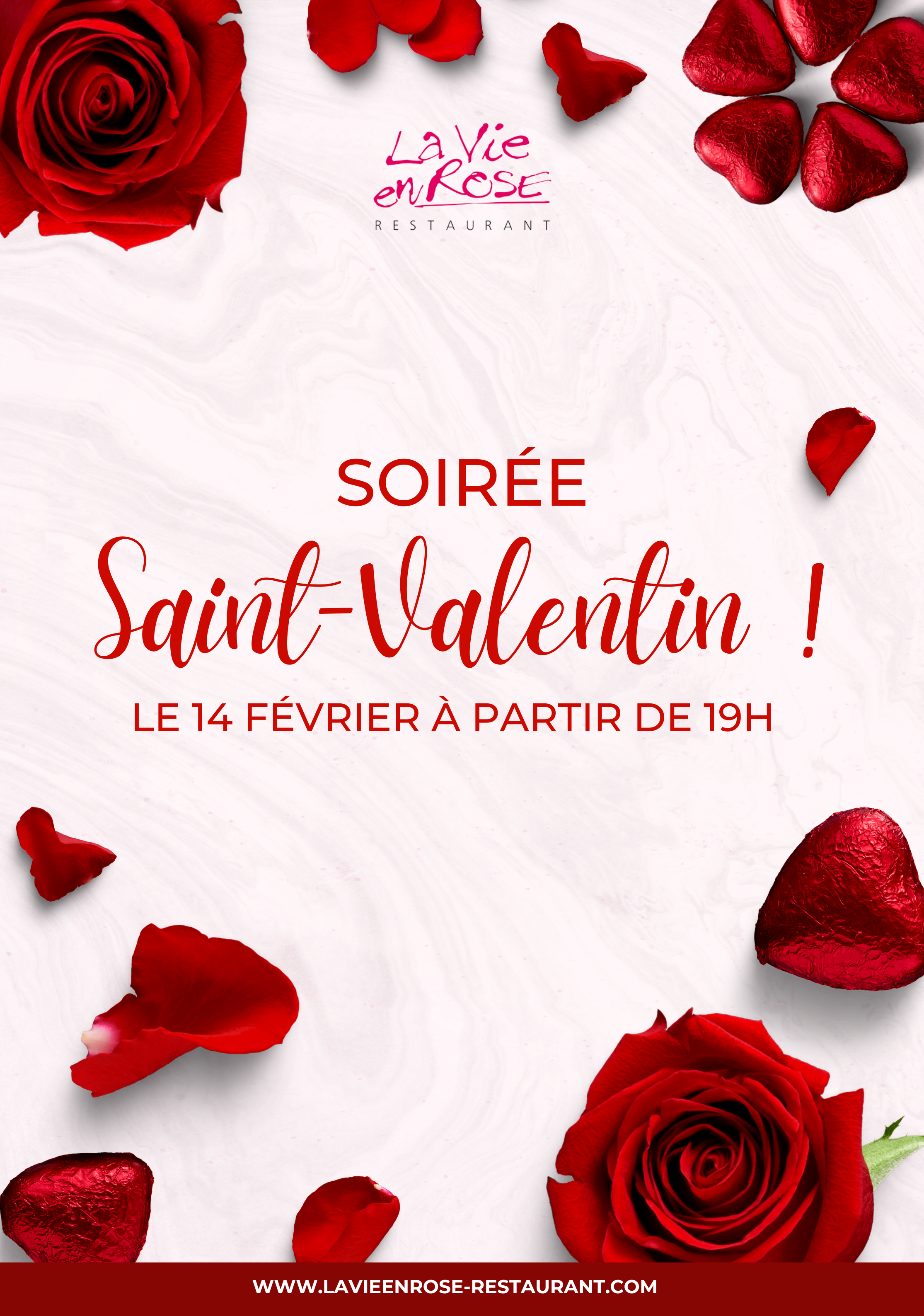 Soirée de la Saint Valentin Un menu unique vous est proposé pour le soir de la Saint-Valentin de 19h à 21h.