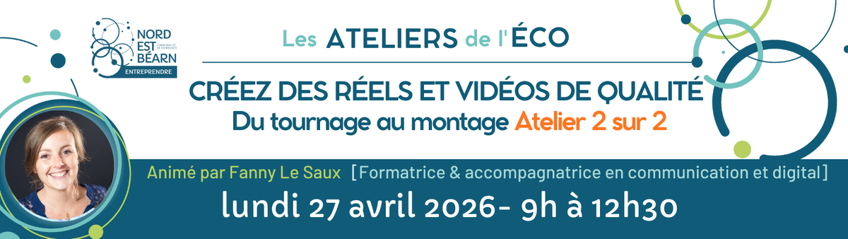 Un atelier animé par Fanny LE SAUX - La P'TITE COM' DE FANNY. Cet atelier fait partie du nouveau programme des formations gratuites et interactives de la CCNEB, pour gagner en compétences opérationnelles, en management, en gestion, en communication, en commercialisation, en stratégie marketing, en juridique.- Sur inscription. Réservé aux porteurs de projets et professionnels du Nord Est Béarn.