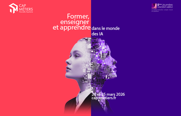 Former, enseigner et apprendre à l’ère des intelligences artificielles : les 5es Journées Vincent Merle interrogent les transformations profondes des pratiques pédagogiques et de formation face à l’essor de l’IA. Cette cinquième édition aura lieu les 24 et 25 mars 2026 au Centre régional Vincent Merle (Pessac). Coordonné par Cap Métiers Nouvelle-Aquitaine, cet événement s’adresse à un large public : chercheurs, professionnels de l’éducation, acteurs de la formation et de l’emploi analyseront les enjeux, partageront des retours d’expérience et exploreront les compétences clés de demain.