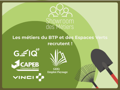 Viens rencontrer Vinci, le Geiq Emploi Paysage, le Geiq 69 ainsi que Capeb qui proposent des postes en
