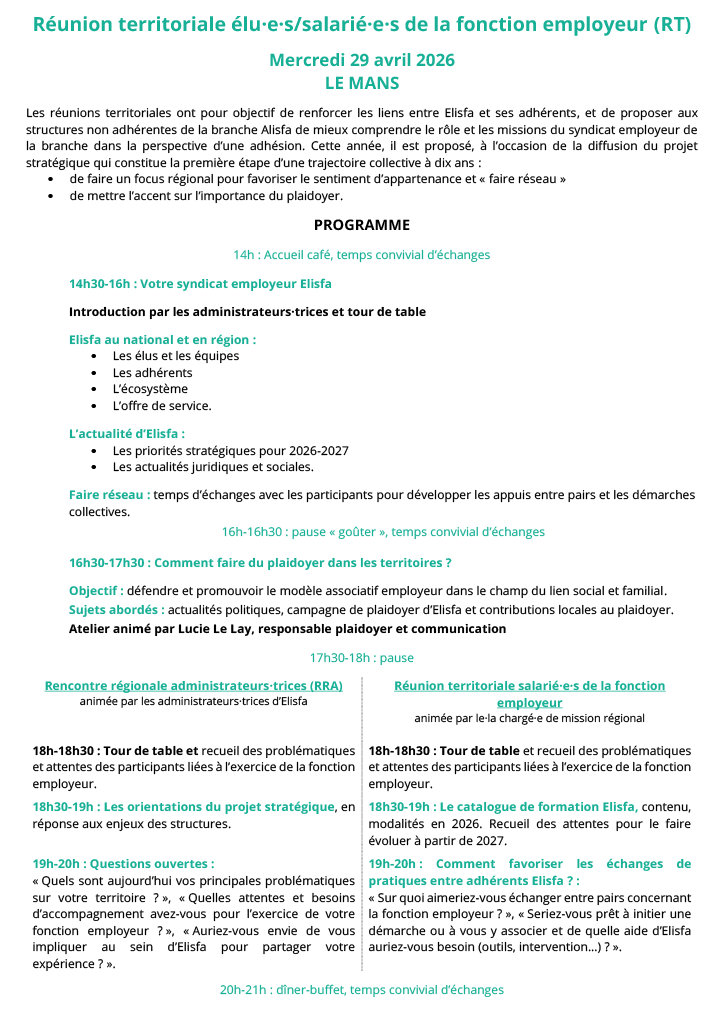 Pour toute question, n’hésitez pas à contacter Sandra Floch, chargée de mission régional (email : sandra.floch@elisfa.fr / tél : 07 87 55 01 56) ou l’accueil d’Elisfa au 01 58 46 13 40.
