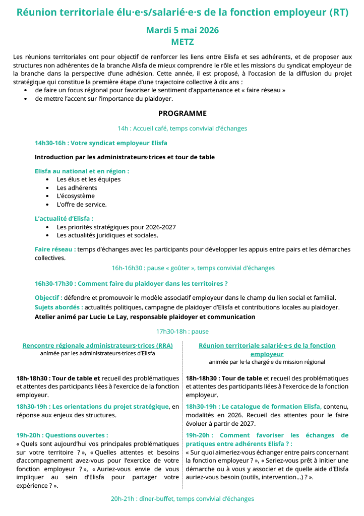 Pour toute question, n’hésitez pas à contacter Agnès Stemler, chargée de mission régional (email : agnes.stemler@elisfa.fr / tél : 06 84 14 86 80) ou l’accueil d’Elisfa au 01 58 46 13 40.