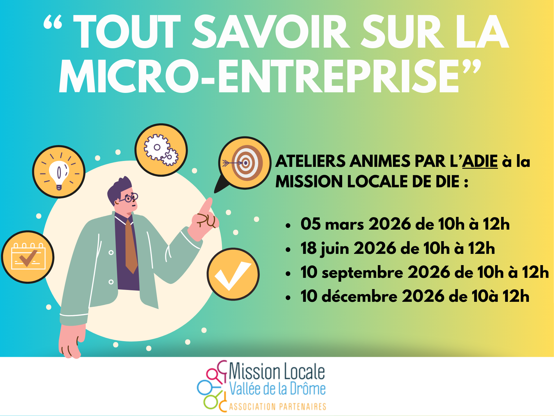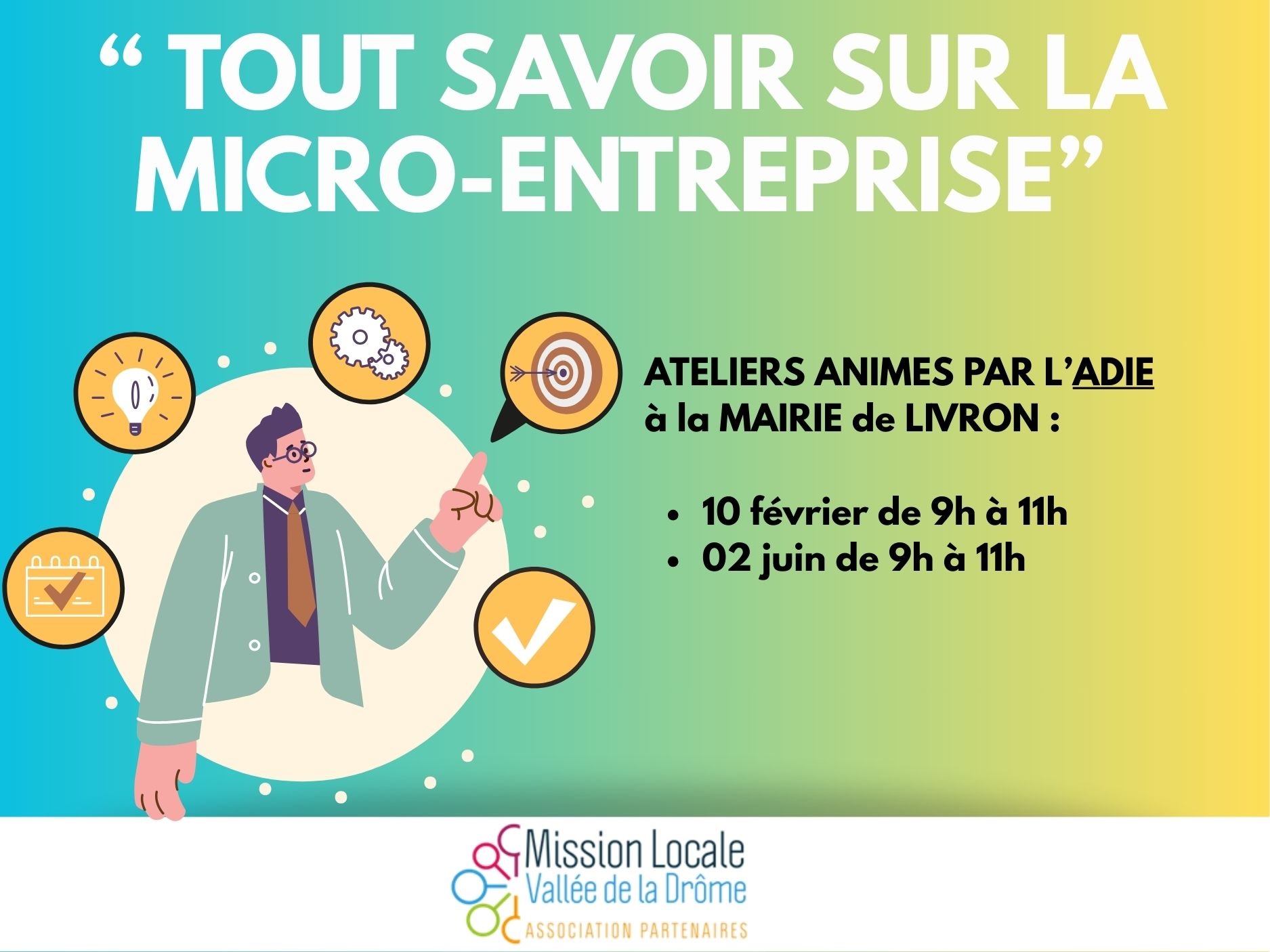 | | | | | | | | "TOUT SAVOIR SUR LA MICRO-ENTREPRISE" Ateliers animés par l'ADIE |