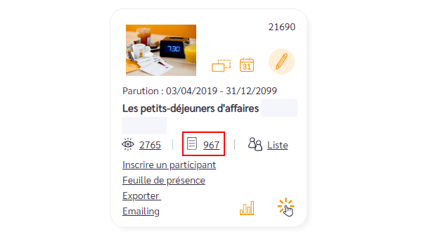 Accédez au tableau de bord de votre fiche et cliquez sur Voir le détail des Inscriptions.