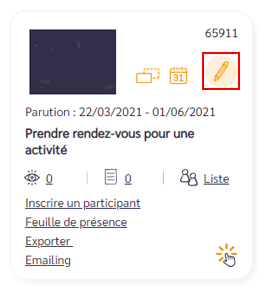 SI vous choisissez en Cible les inscrits ou les non-inscrits, choisissez la fiche activité concernée.