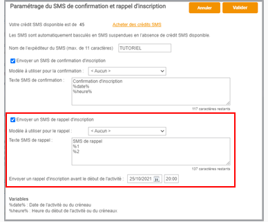 Attention, l’envoi d’un SMS test sera décompté de votre crédit SMS.